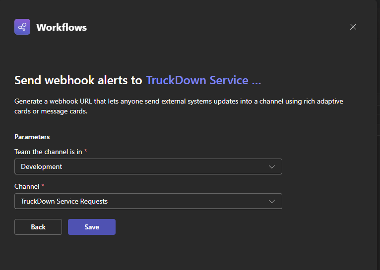 If you use Microsoft Teams for your internal communications then you can set-up the TruckDown system to send messages directly into a Teams channel of your choice. Here are the step-by-step instructions for configuring the TruckDown integration.